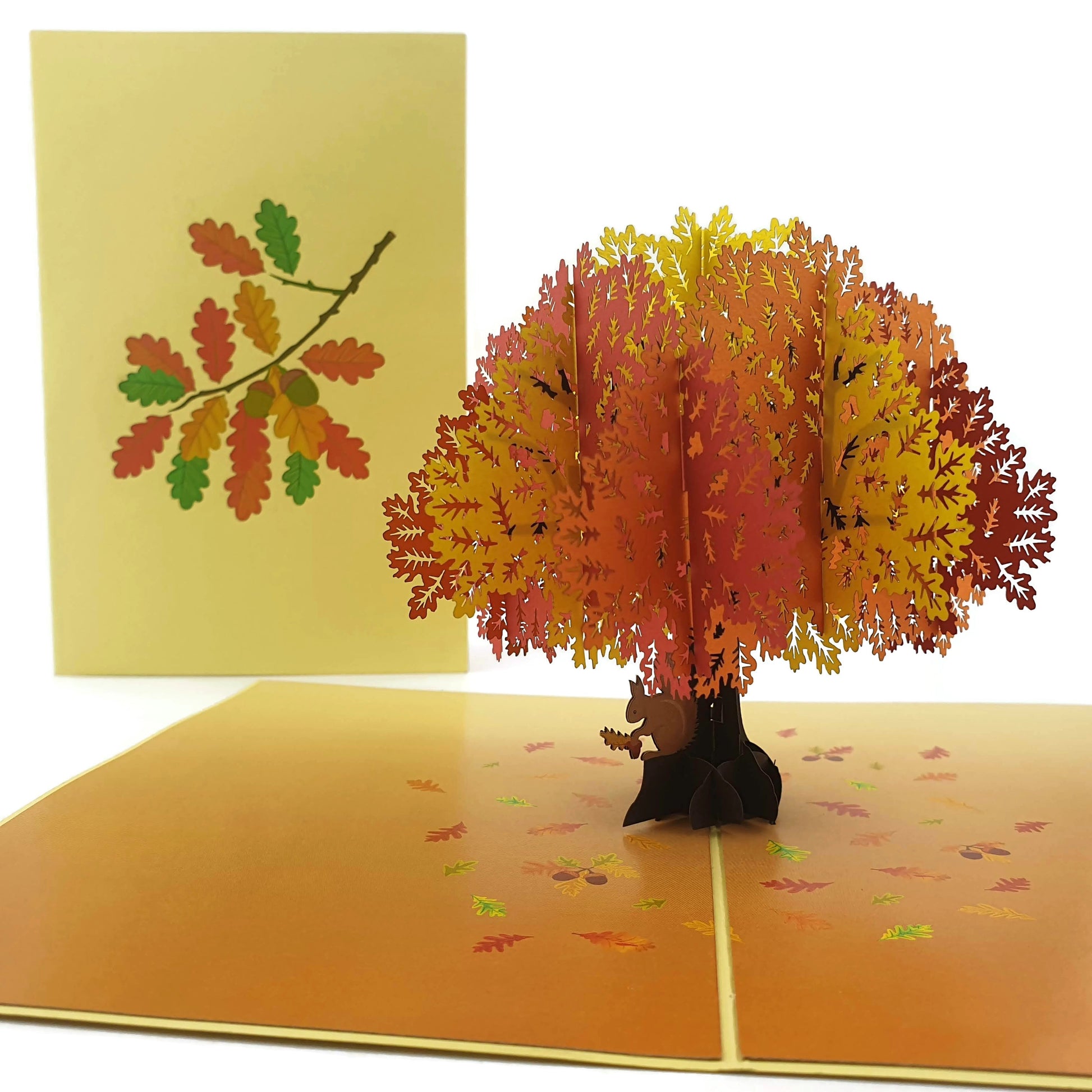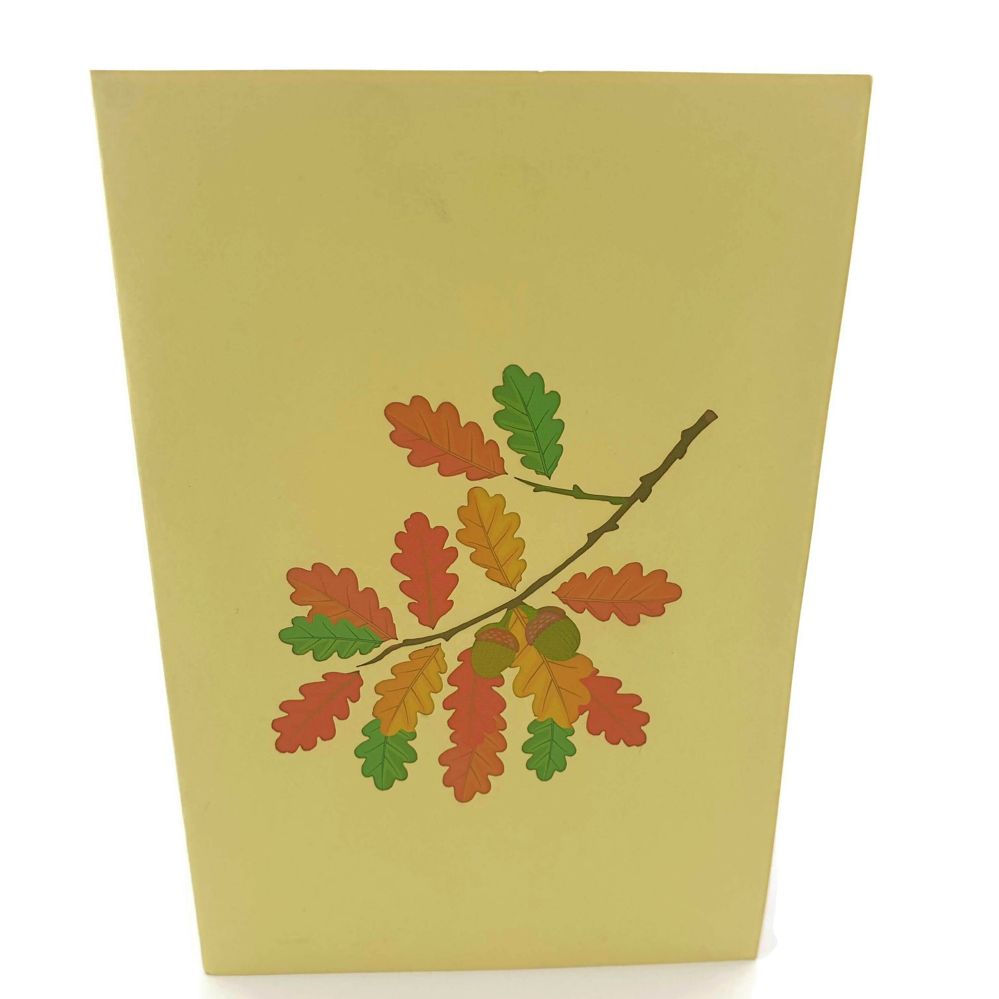 The cover of this lovely card is adorned with an illustration of a sprig of an Oak branch, upon opening, a beautiful Oak tree is revealed with orange and yellow leaves, look out for the squirrel collecting acorns at the base.