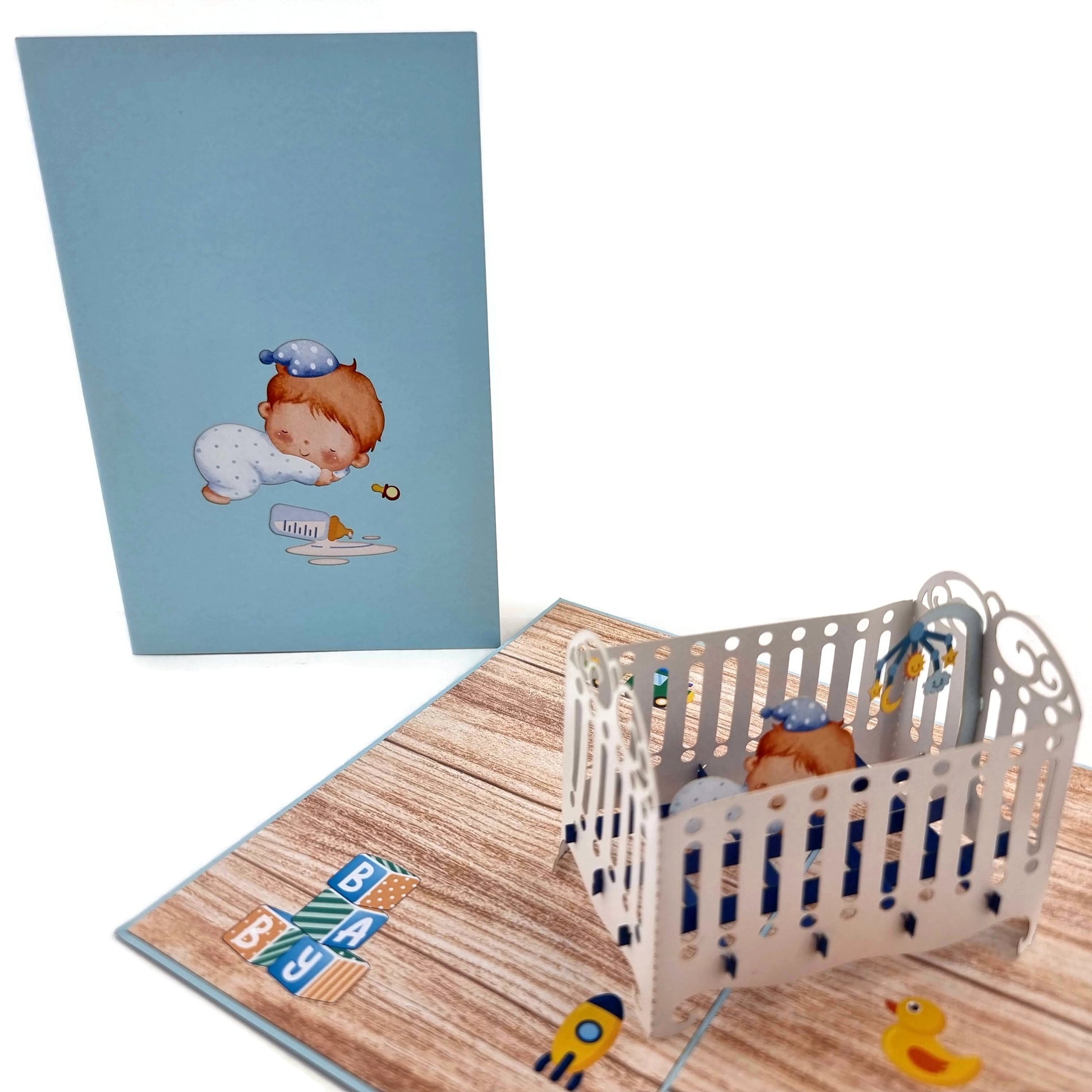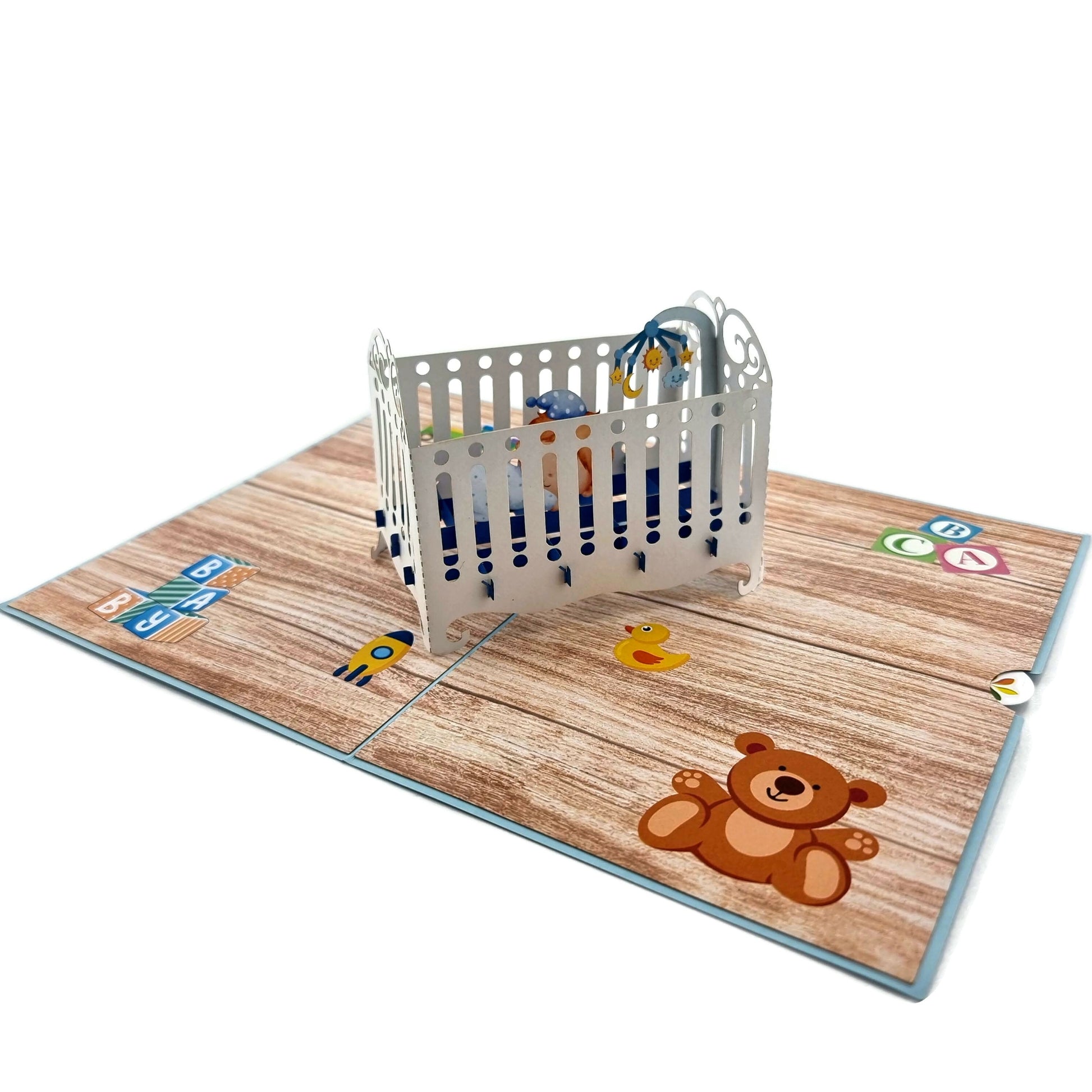 Blue Baby Cot Pop Up Card