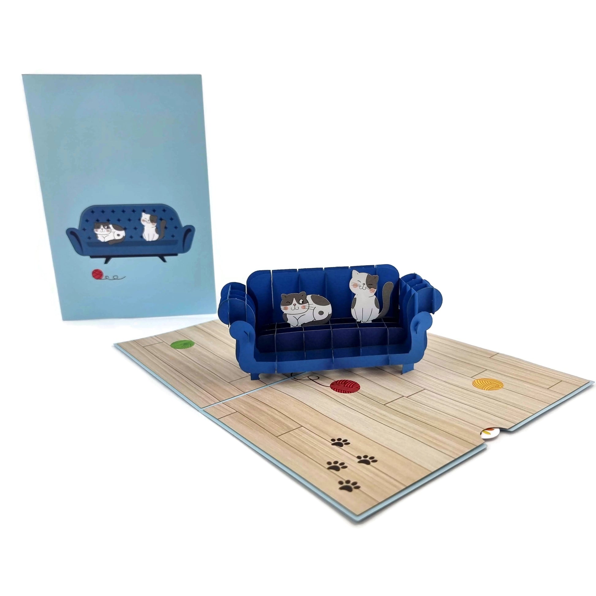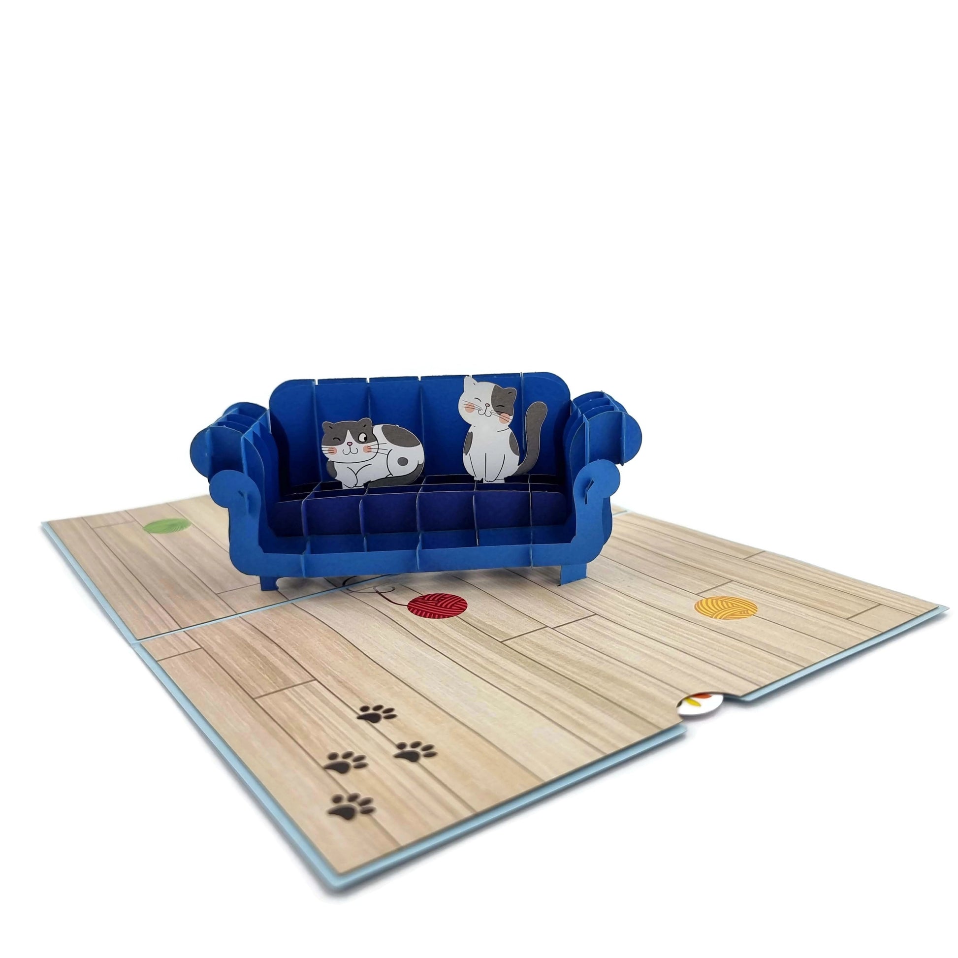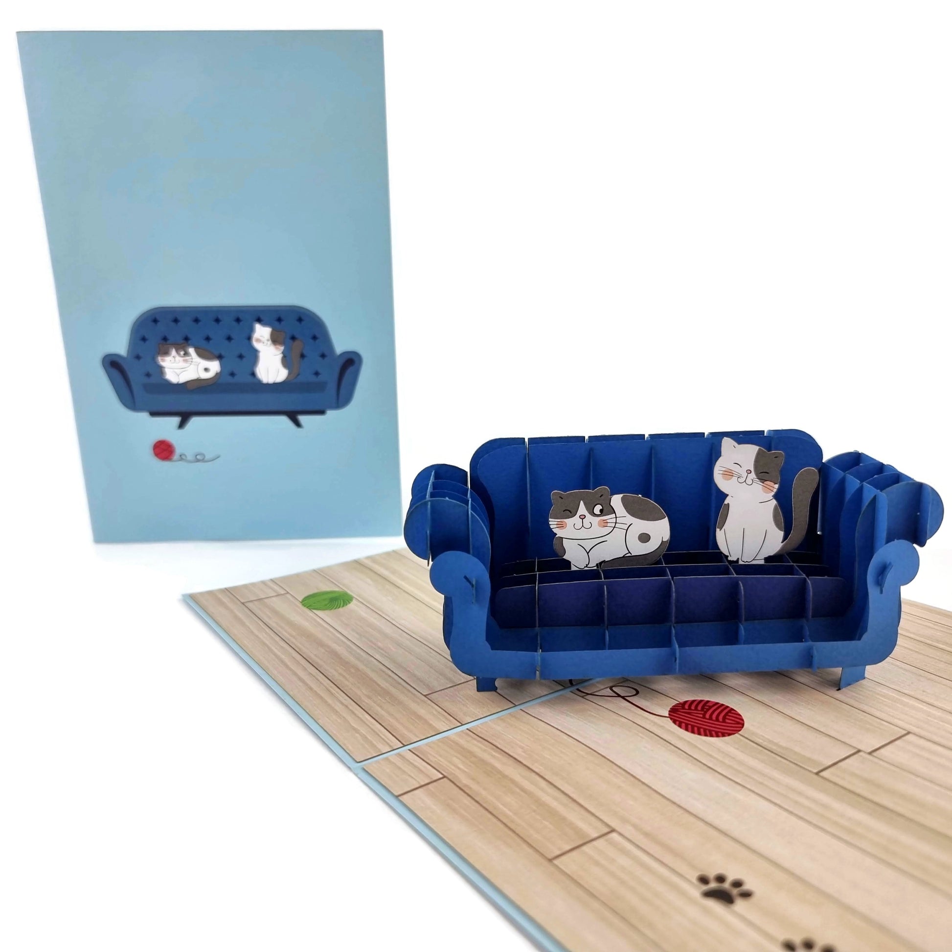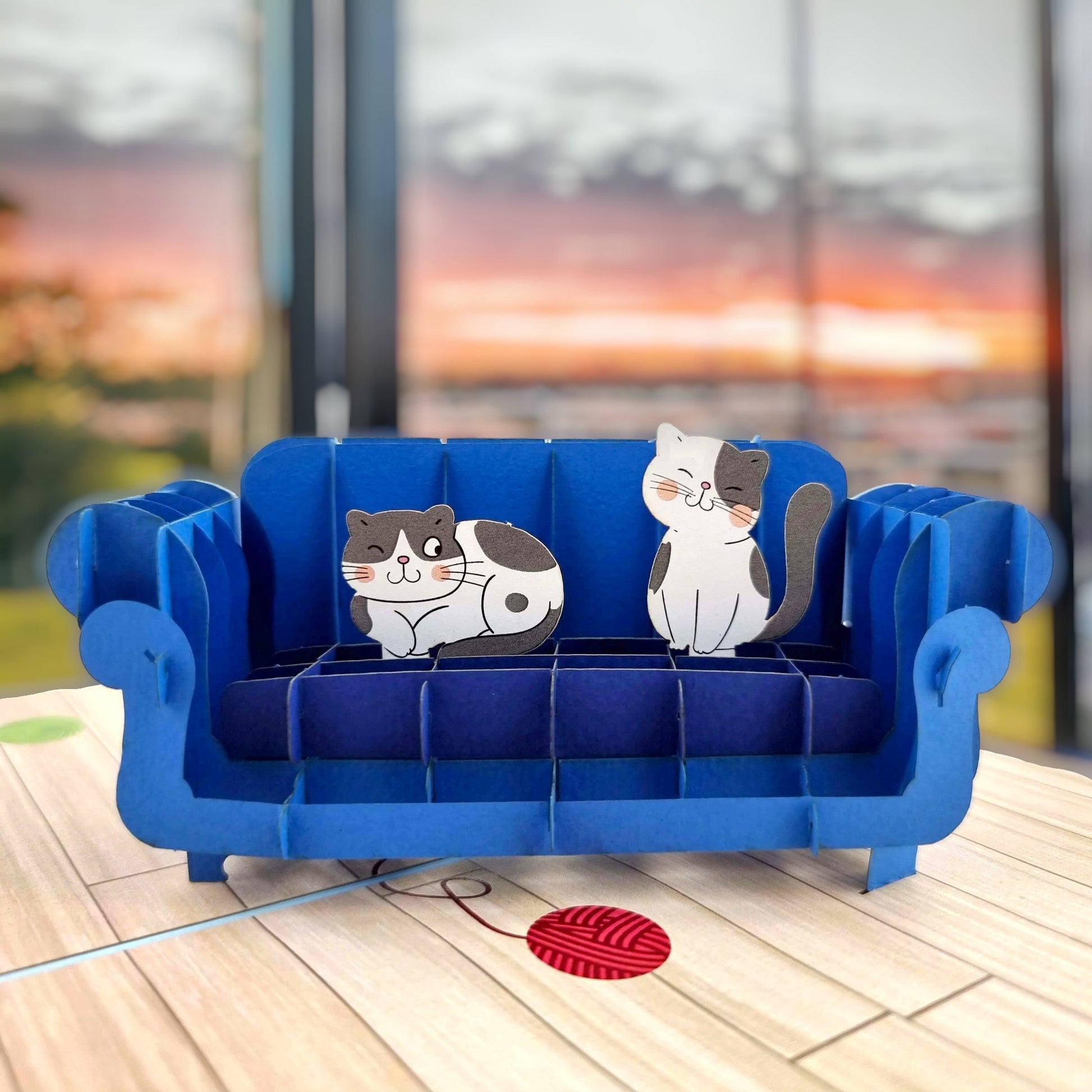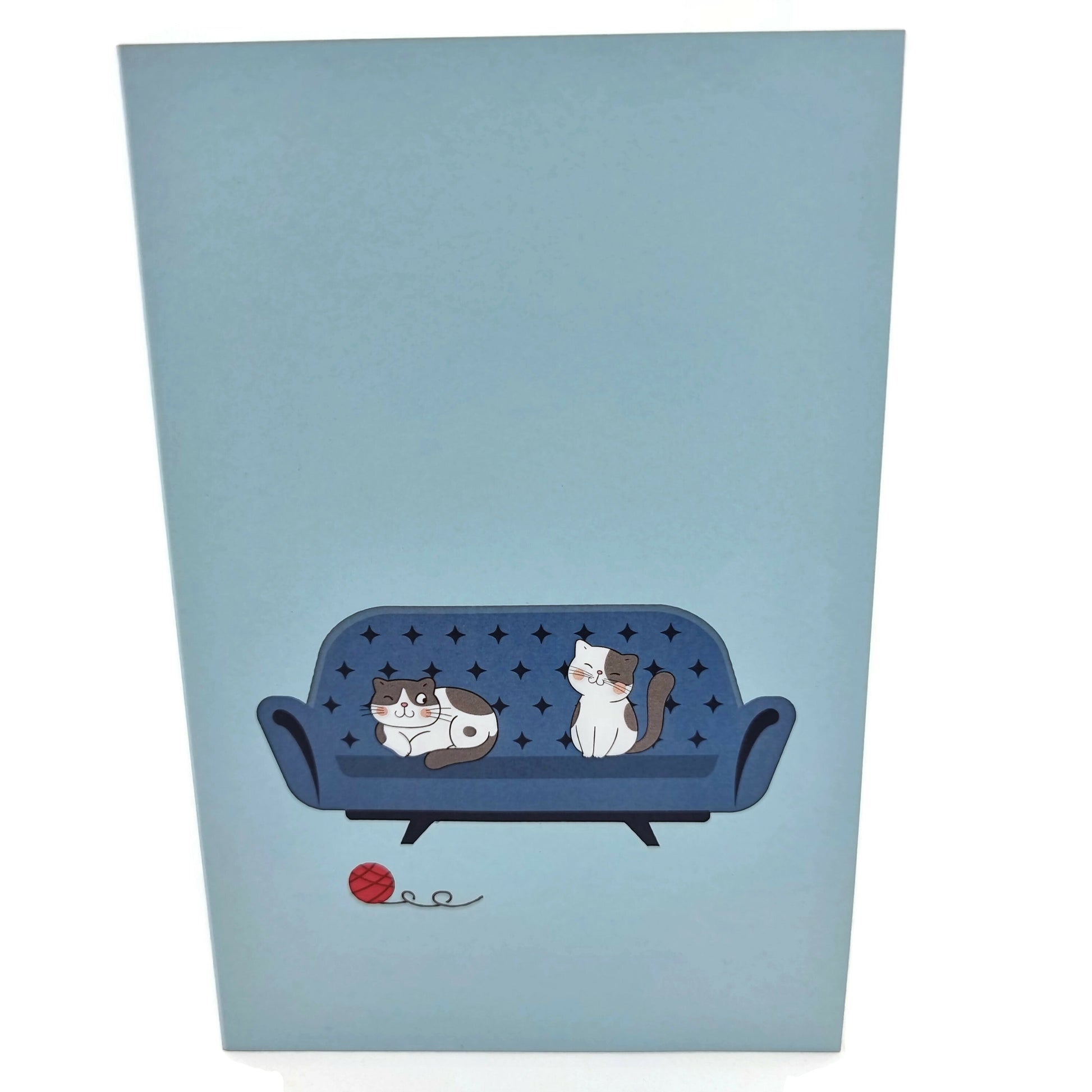 This super cute blue card's front showcases the iconic image of two cats patiently waiting for you on the sofa. When opened, prepare to be amazed by the 3D sofa with both feline friends. A must-have for all cat lovers, this card's impeccable design and craftsmanship will surely impress any recipient. Sized at 12 x 18 cm (4.7 x 7 inches), it comes with an envelope and a slide out note card.
