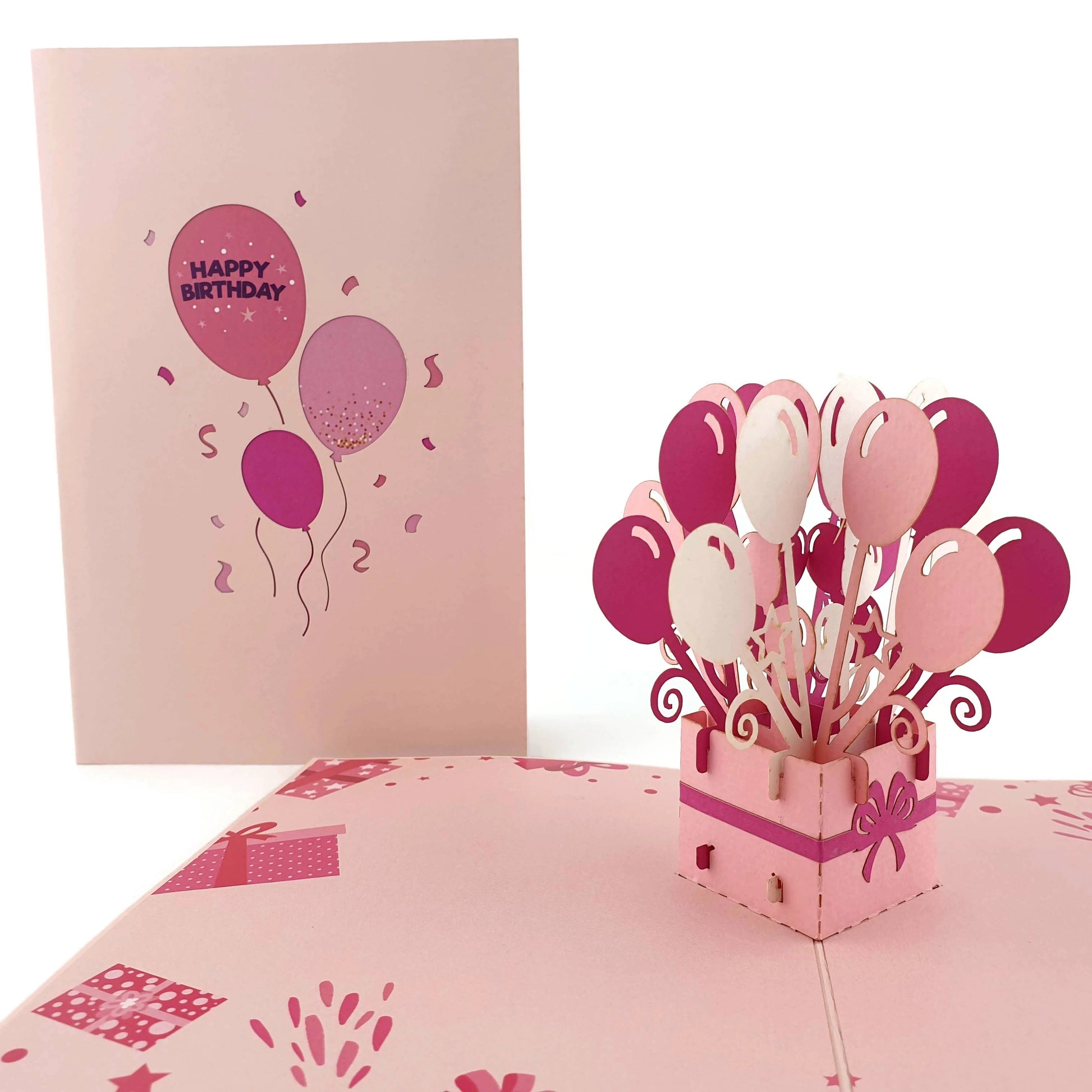 Pink Birthday Balloons Pop Up Card