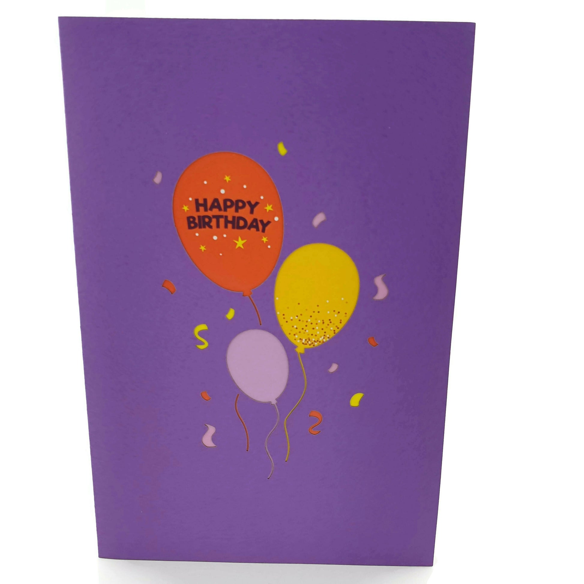Celebrate with our Purple Birthday Balloons Pop Up Card - it'll surely make anyone feel young and lively!