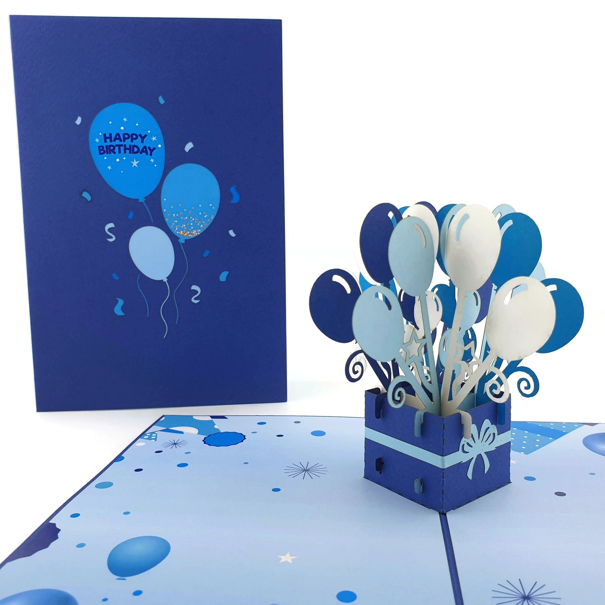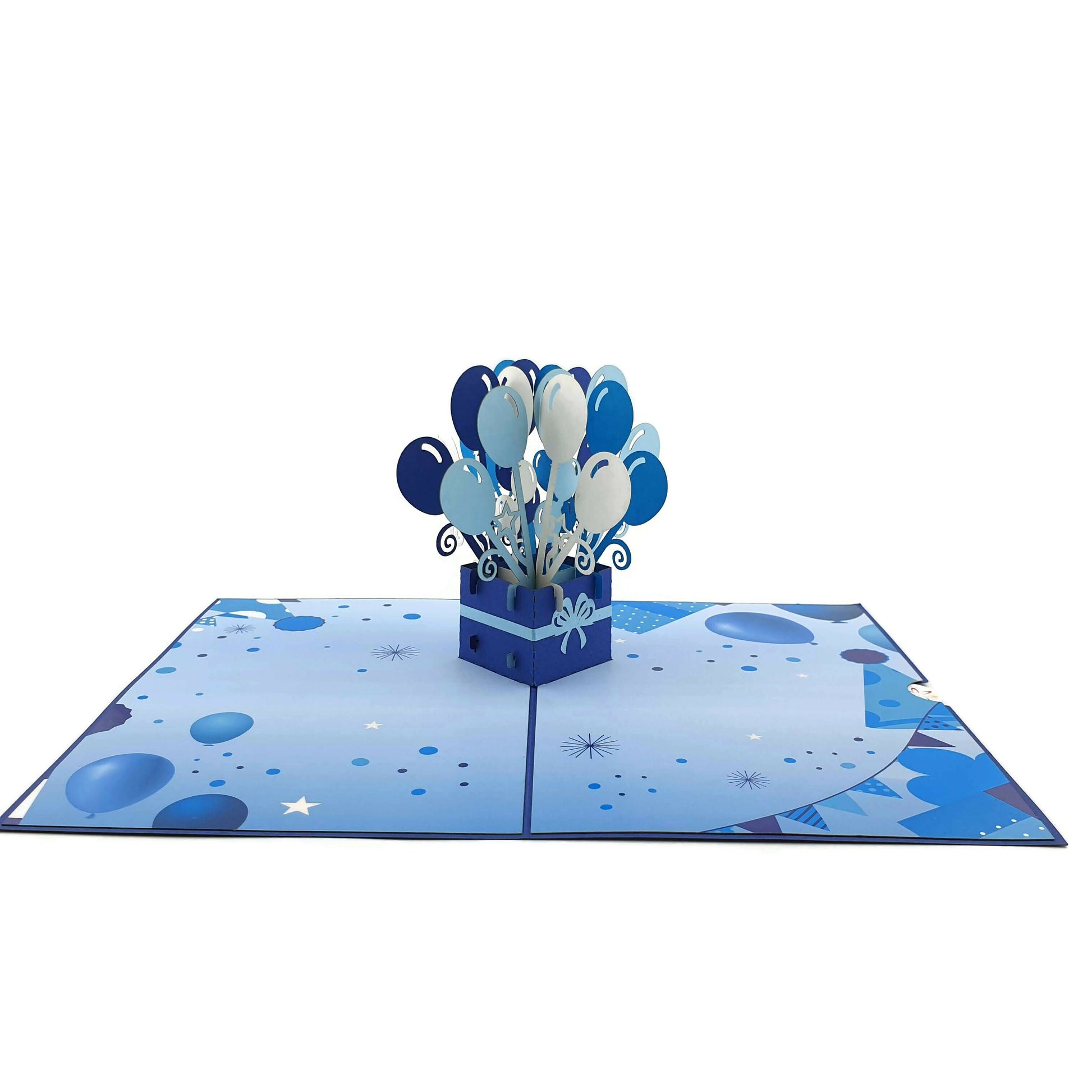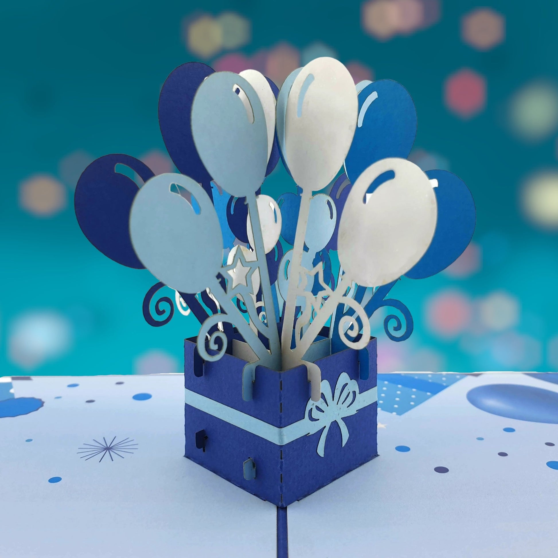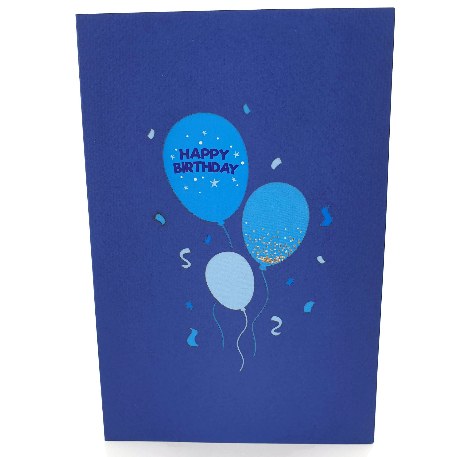 This awesome pop up card is a guaranteed crowd pleaser. The blue cover features three colourful balloons with a Happy Birthday message. Once opened the pop up card reveals a three-dimensional treat. A multi coloured balloon bouquet situated inside a blue base to surprise the lucky recipient. Whether you are a continent away, or across the hall, surprising someone with a little something special will make a birthday meaningful and memorable. The card is 12 x 18 cm (4.7 x 7 inches) and comes supplied with a white envelope and features a slide out note in the right panel to write your special message.