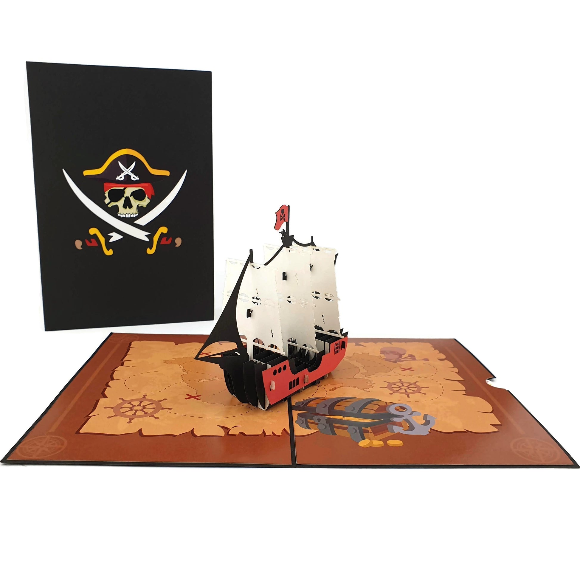 This pop up card is part of our discovery collection and inspires feelings of adventure, this card is sure to remind you of a special journey. Perfect for birthdays, Fathers Day, or for those who just love pirates. This card is sure to brighten someones day!