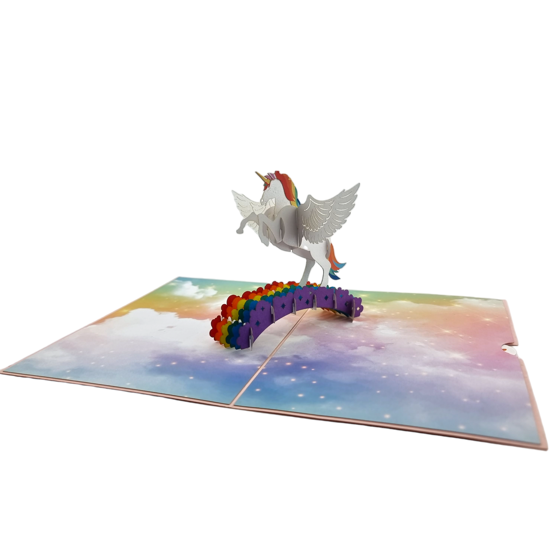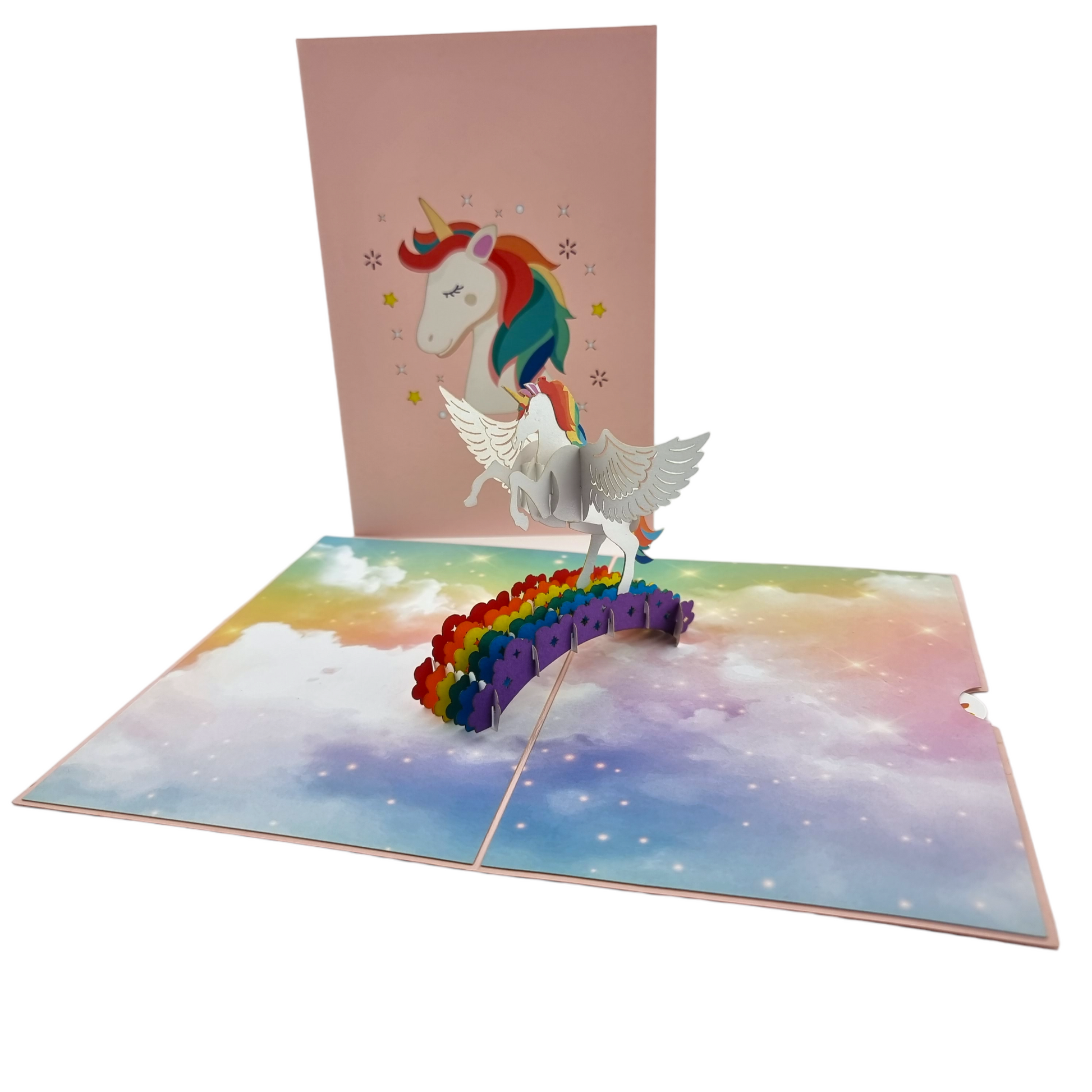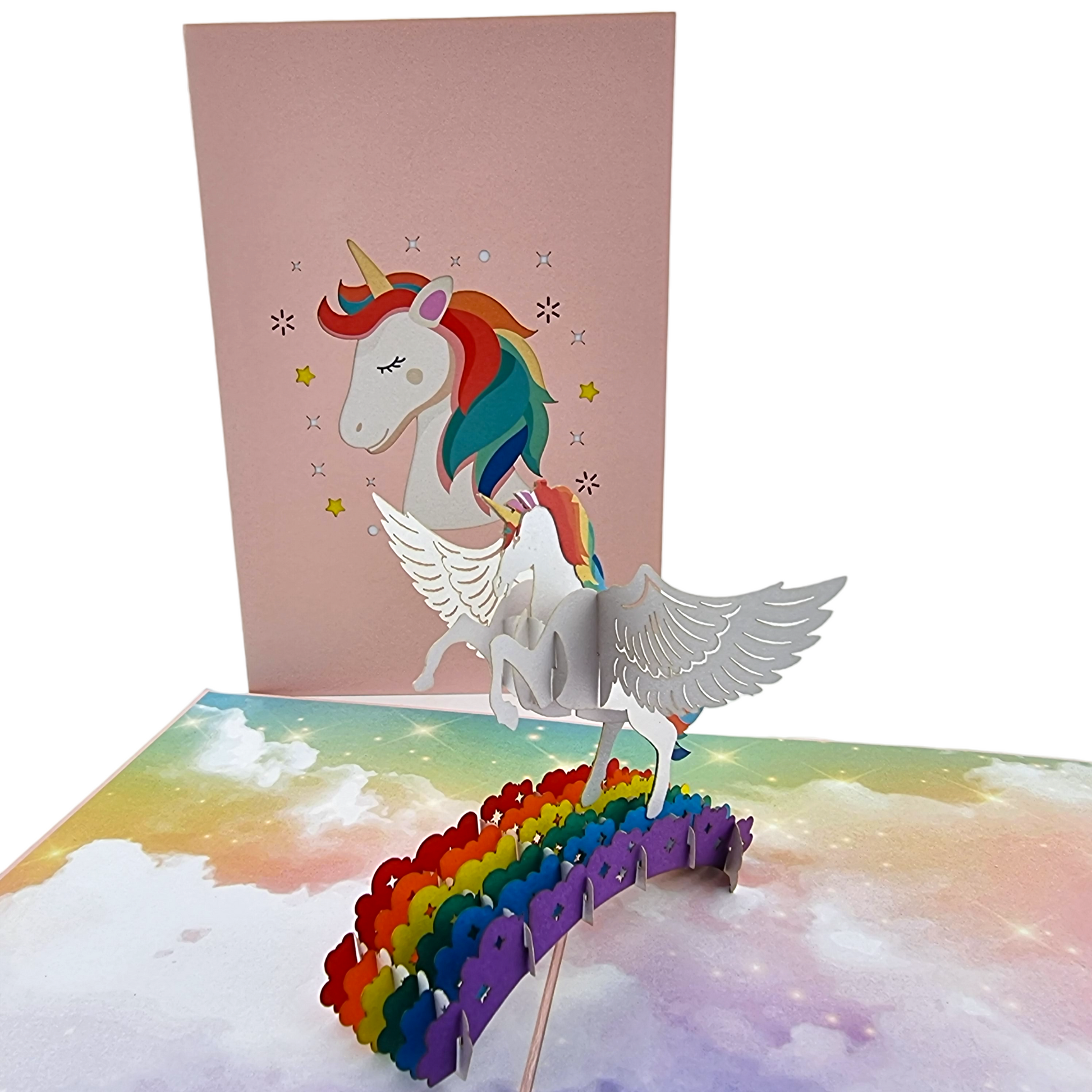 Experience the enchantment of our magical Flying Unicorn Pop-Up Card!