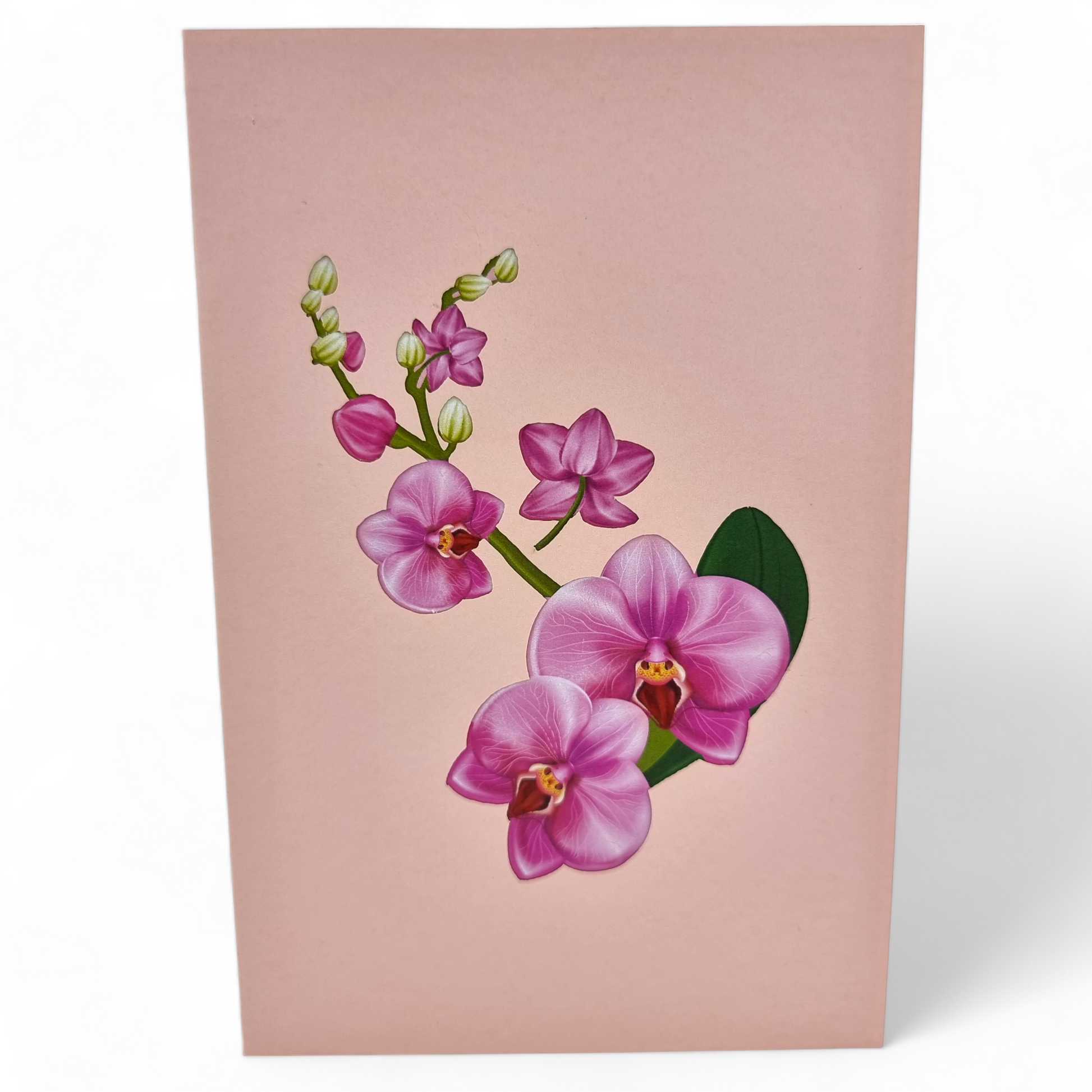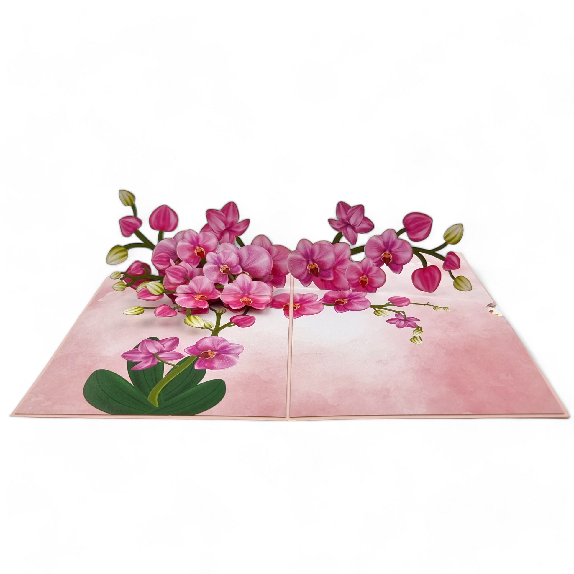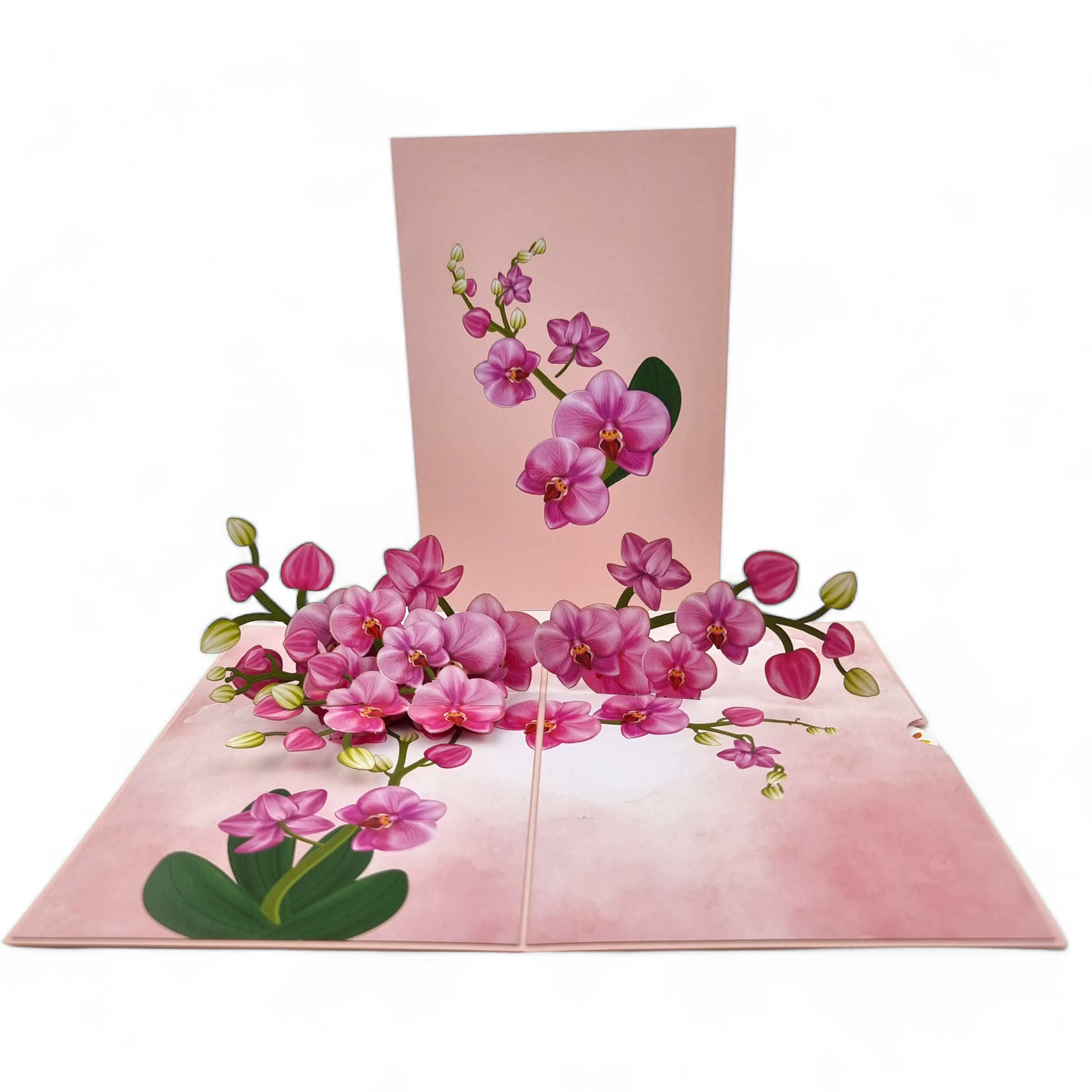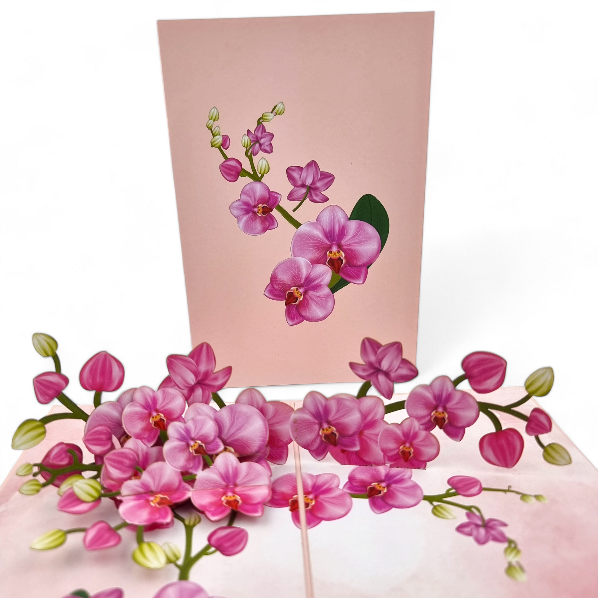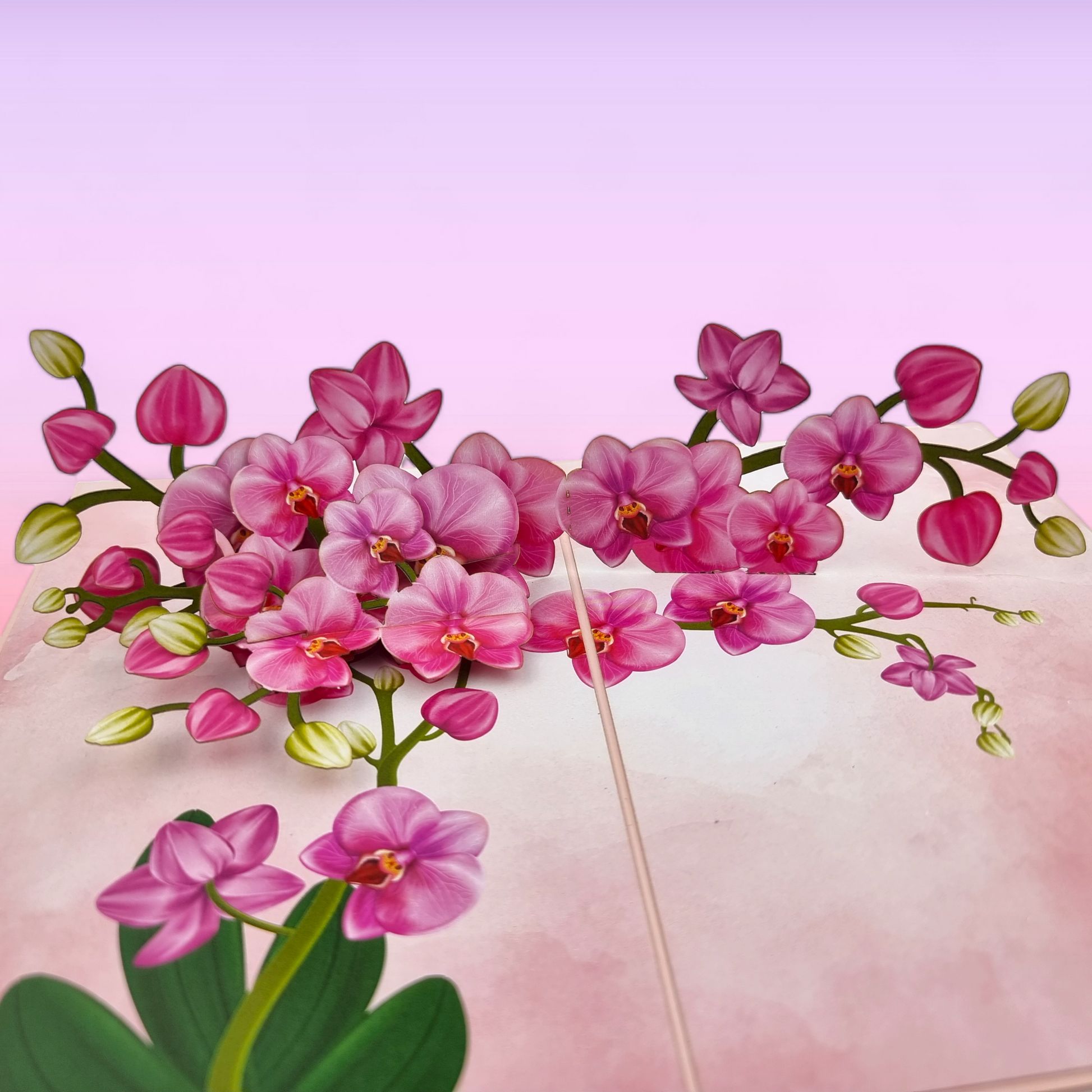 Experience the beauty of our Pink Orchids Pop Up Card - a must-have for any lovers of flowers!