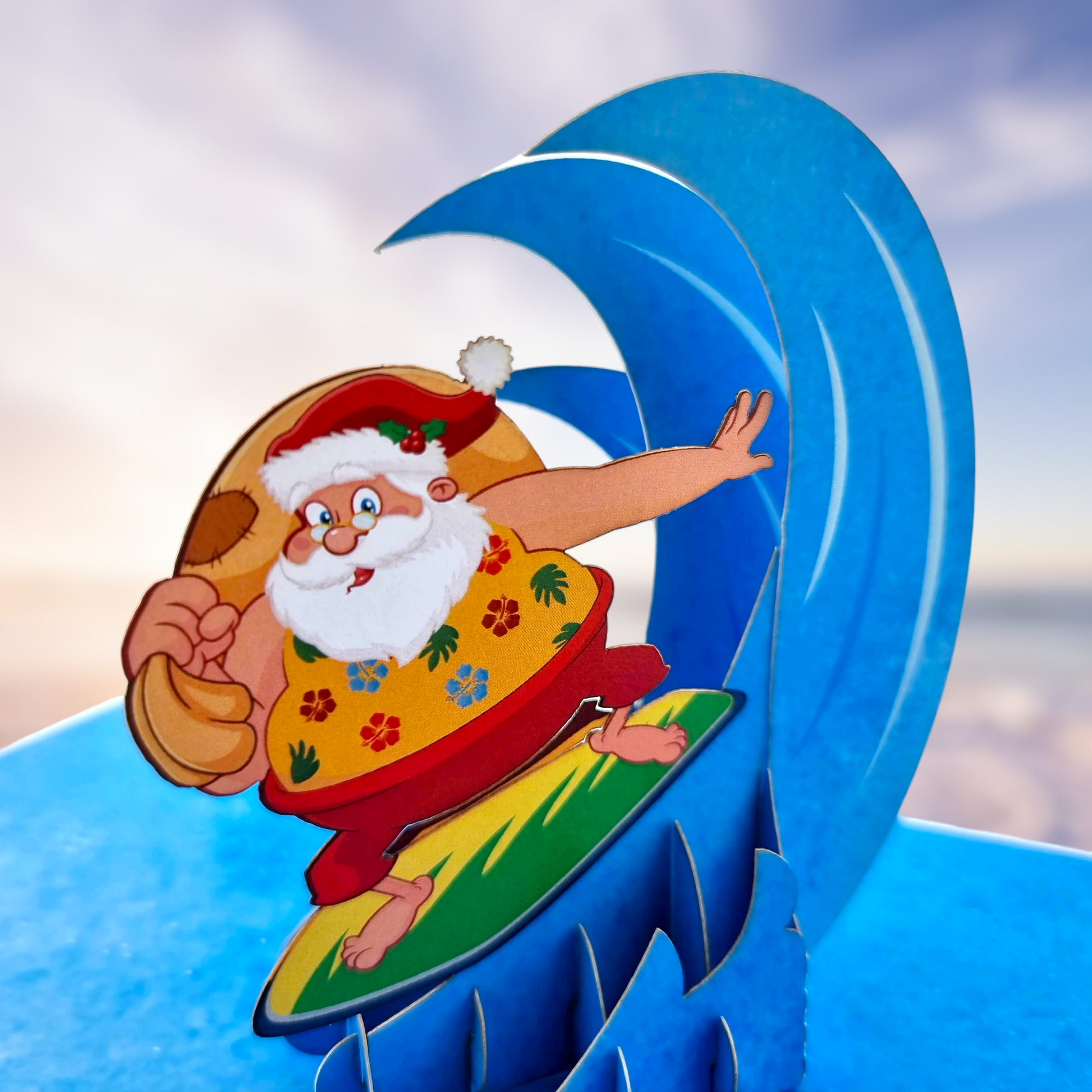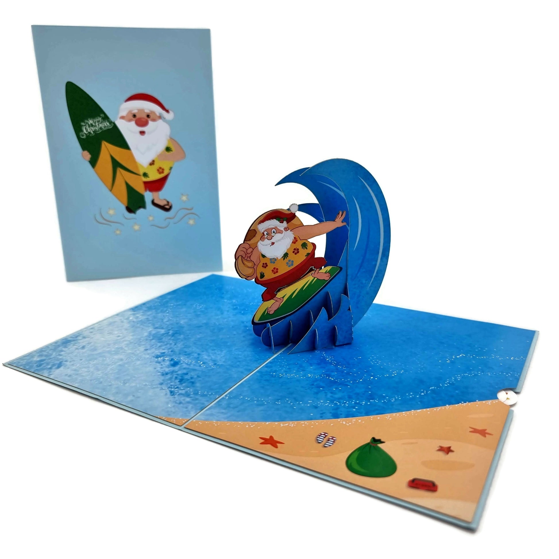 Fearlessly take Santa along for a post-Christmas ride on the waves with the Surfing Santa Pop Up Card!