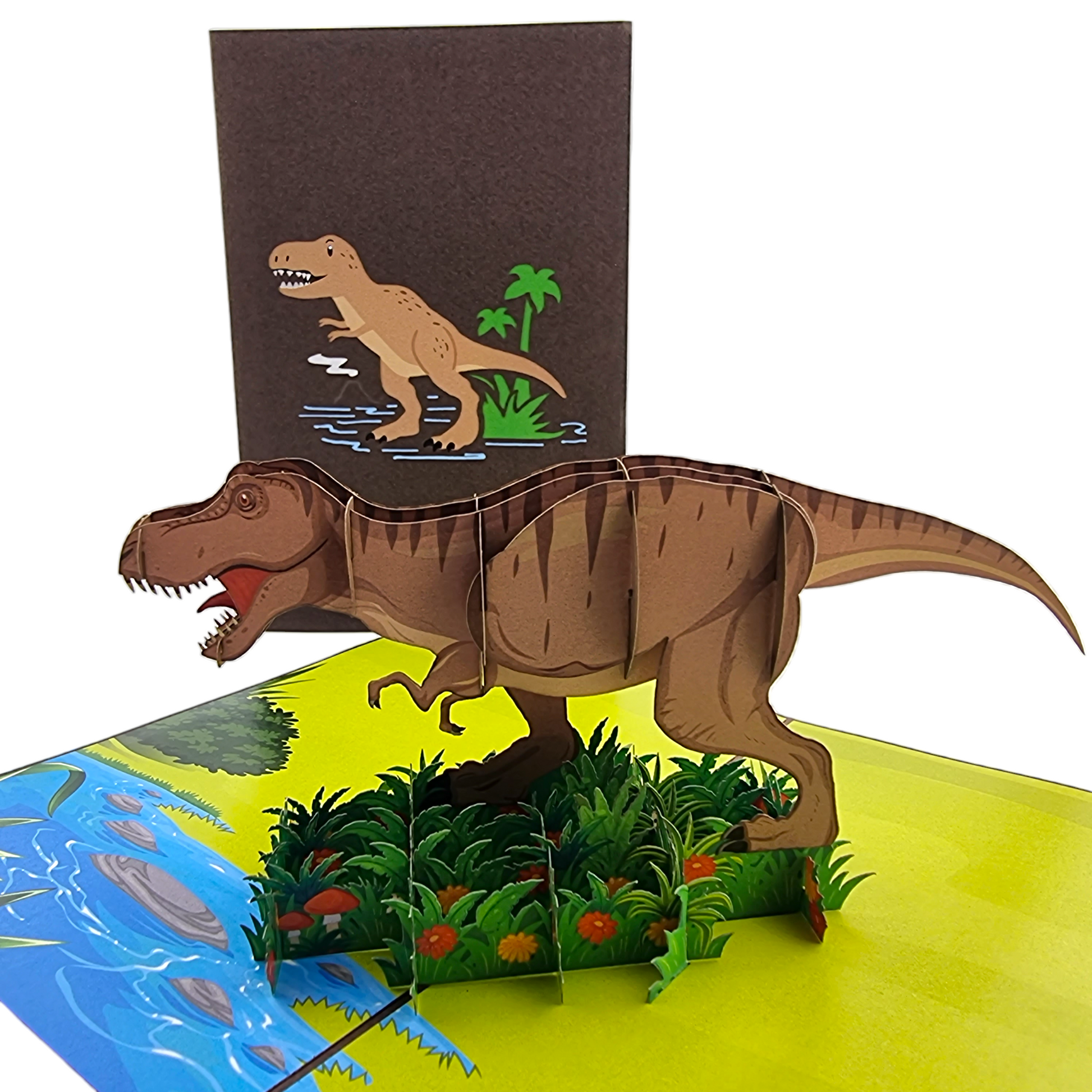 Explore imaginative realms with this awe-inspiring T-Rex Dinosaur Pop Up Card!